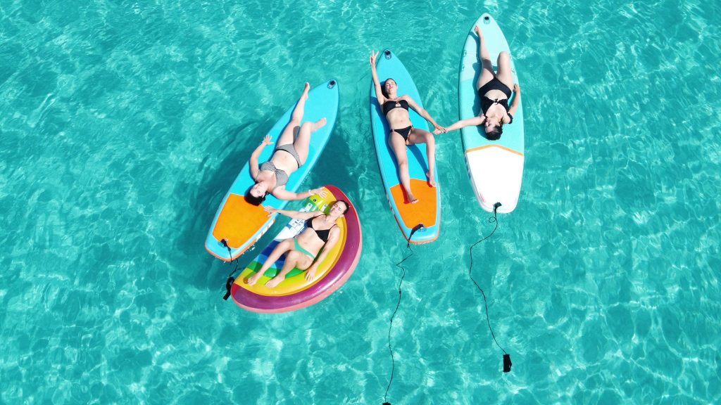 Podréis elegir si preferís comer en uno de los restaurantes ubicados en la playa de Illetes, o comer en el barco con la comida que halléis elegido previamentea, mientras os dais unos gratificantes baños o dais un paseo con la tabla de paddle surf incluida en nuestros barcos.